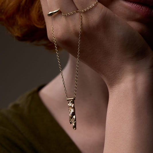 Silver and 18ct Gold Moissanite Leaf Necklace