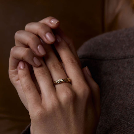 Inspired by wild landscapes, our Molten Collection transforms silver and gold into flowing, organic forms. Each piece ripples like wind-swept dunes, while undulating edges capture the movement of rolling hills, flowing like molten lava.