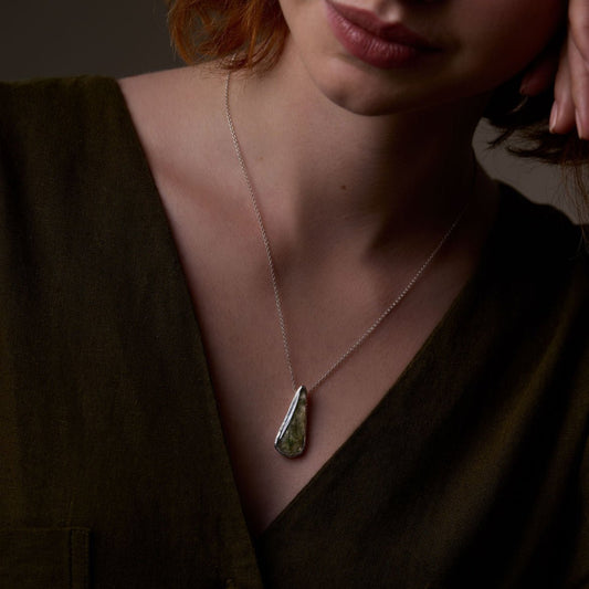 Rutilated Quartz Molten Silver Teardrop Necklace